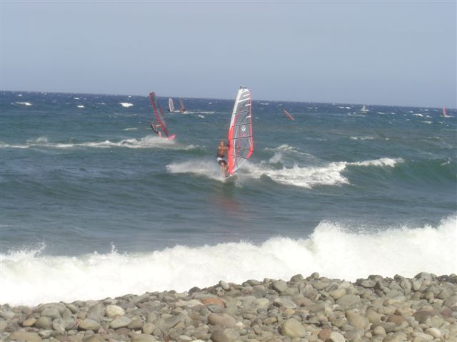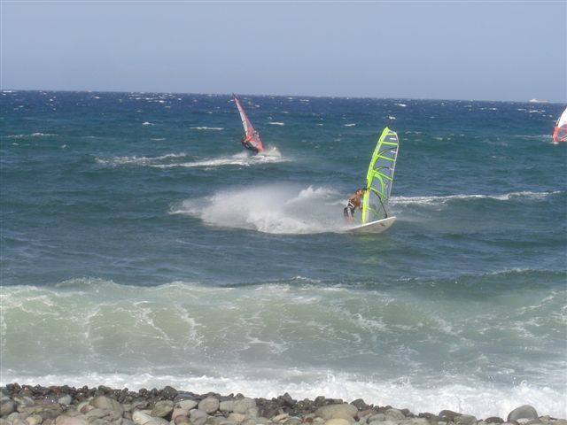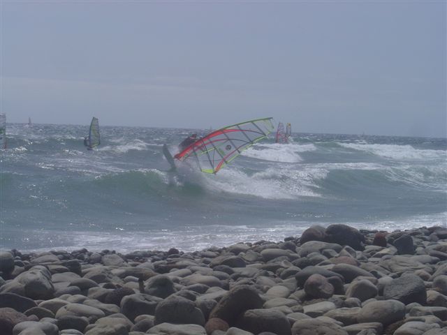The freestyle dudes waren niet te volgen. Ongelofelijk wat die deden-> gooiters, airjibes, spock540 shove'it into airjibe. Waren denk die lui van bonaire. Wel varen ze op andere stuf dan wij-> freestijle stuff. De zeileer zijn groter en vlakken, de boards hebben denk wel 2 liter meer vollume.