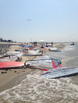 De voorspelling voor het weekend van 8 en 9 juni op de Brouwersdam zeekant was een noorden wind van rond de 9 m/s. Prima weer voor een slalom wedstrijd! Iedere race zat ik in de finale en dat samen met de 8 beste racers van Nederland. Na de eerste dag stond ik 5e in het algemeen klassement! Vooral de laatste race van zaterdag, waarbij de meter op hvh rond de 12 m/s stond, was ongekend! Met een maximale windsnelheid (12 m/s) en een 7.0 m2 zeil gingen we met z’n 8en op de boei af. Ging heel erg hard!