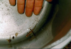 kris schakelt terug van 5 naar 4 en ineens slaat de motor af hmmzz.z.. gvd! wat nou weer.. starten lukte ook niet tijdens rijden.. en hup daar stonden we weer naast de vangrail.. 3de x ondertussen hje daar is de guardia civil weer dit x een andere.. deze leken wat meer engels te begrijpen.. wij vervolgens onder politie escorte de heuvel genomen en met de motor uit naar beneden gereden eerst volgende afslag genomen en daar heeft de GC een garage gezocht en ons derheen ge-escorteerd... ondertussen kwam er al aardig wat witte rook uit dat pijpje aan de achterkant... shit! dan lekt ie dus koelvloeistof heb ik me es laten vertellen door clemens :-) wij naar de garage.. die hebben er naar gekeken en conclusie was dat het koelsysteem goed was maar er wel koelvloeistof lekte in de motor..dat kon zijn omdat de koppakking lek was of omdat de kop krom was.. hmmz.... :(( maar hij d8 dat we er nog wel meej naar PT konden rijden opzich maar daar moest er wel naar gekeken wordenm... nja.. hmmz.. zat ons niet egt lekker toch.. |