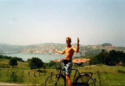 errug toeristisch en camping was een circus en duur.. :( hm.. wat verder zoeken dan maar he..10 km verder op van Peseus was San Vicente de la Barquera.. met een groooott en surfbaar strand.. en heeeeeele mooiee golven... ove de hele lengte van de baai breken ze langzaam ..ooeehhh... maja geen wind nog steeds :-( maargoed.. ALS het waait kan je hier super surfen.. maar aangezien het in heel europ zo´n beetje windstil is.. hier dus ook.. was er weinig te doen ... maar wel mooi strand en meer beuno chica´s!!! en meer te doen.. ok best hier blijven we voorlopig.. surfspullen overgehaalt ook.. een en andere uit de |