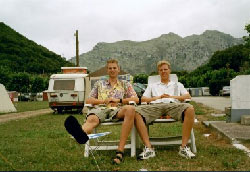 Hoppp de eerst volgend picknick plaats zijn we eraf gegaan en hebben alle banden even grondig gecheckt. en ja hoor weer een grote bobbel op de band!! ^$%^^$^#$ Het wiel maar weer even wisselen dan,, ( nog even en we kunnen het in 7 seconden ;-) ) toen zijn we nog een stukkie doorgetuft naar een paar campings. die allemaal vol of al dicht waren. optie 2 dan maar creperen in Ochends 3 uur lopen zoeken naar een garage die de juiste banden had....terug gereden en hopla hier zit je dan weer.... Denkend aan alles wat je hebt meegemaakt.. |